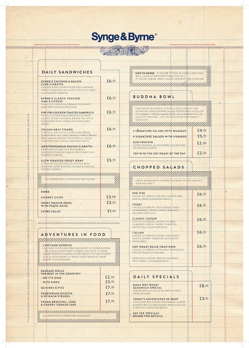 Synge & Byrne Kilbroney Menu (2025 Update)